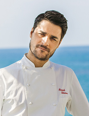 Executive chef of the Michelin-starred restaurant Indaco in the 5-star hotel L'Albergo della Regina Isabella on the island of Ischia, Naples, Italy—a resort area surrounded by the sea. With unparalleled sensibility and techniques nurtured by collaboration with domestic and overseas chefs, his cuisine continues to draw celebrities around the world.