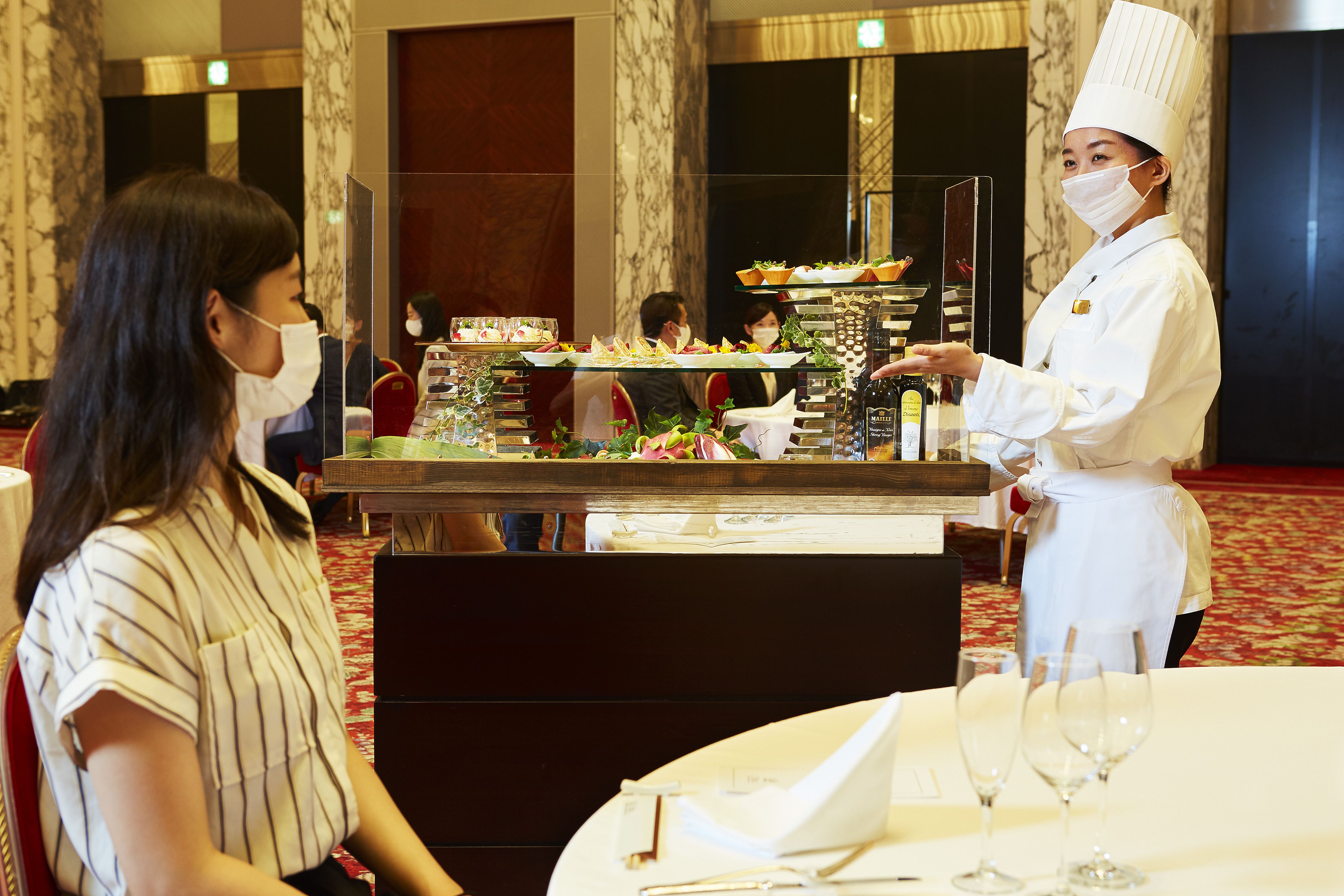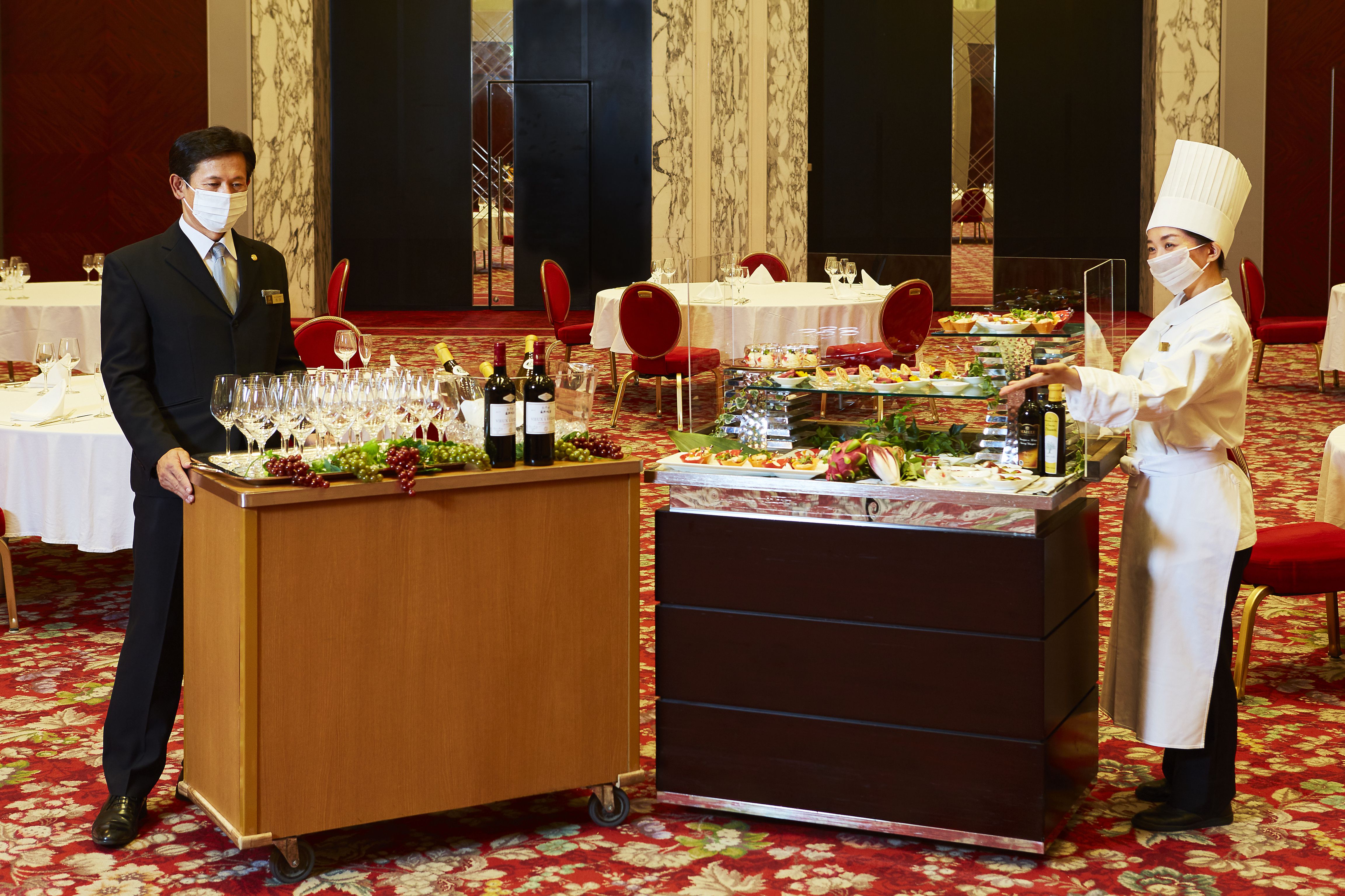 ワゴンサービスホテルスタッフがワゴンにて各テーブルを回りますので、その場でお客さまのお好きな料理をお選びいただけます。 |