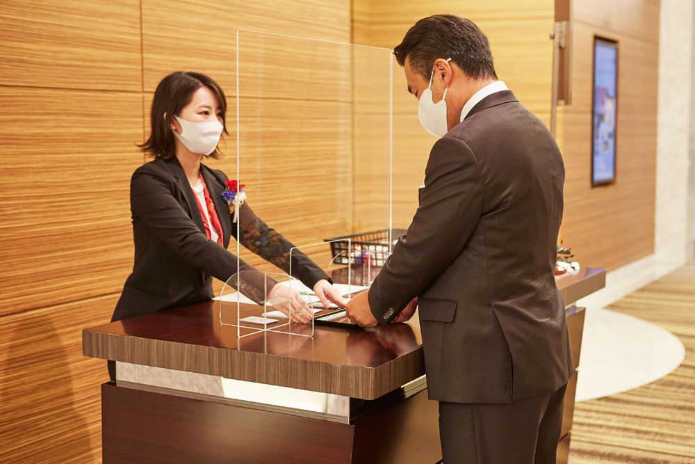 ご要望に応じて、受付等に飛沫防止アクリルスクリーンを