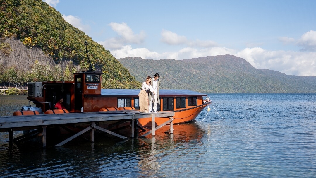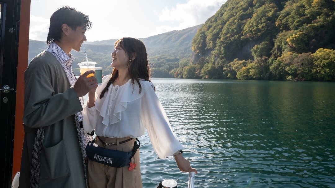 早朝にしか出会えない、静寂の湖上からの絶景。小型船に乗り、コーヒーなどのドリンクを片手にゆっくりと進むクルーズは、十和田湖の朝の澄んだ空気と輝く十和田湖の朝日を全身で感じられる特別な時間です。