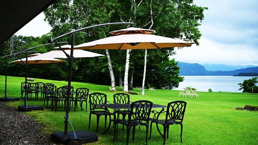 湖を望むプライベートガーデンで季節の風を感じる