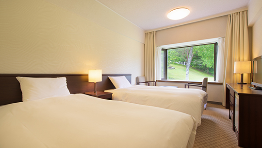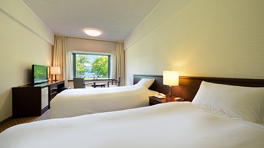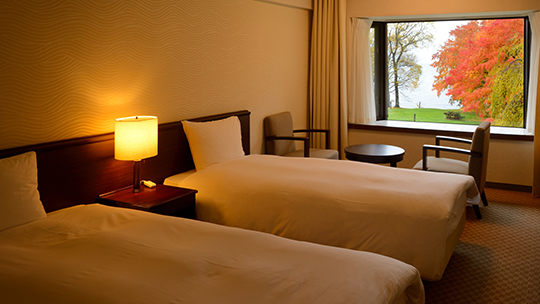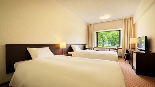 湖畔の景色をお楽しみいただける東側に面したお部屋です。ゆとりある空間で、やすらぎのひとときをお過ごしいただけます。全室禁煙となります。