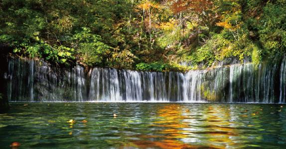絹糸のような水が幾重にも降り注ぎ、この白糸の滝をつくっています。- アクセス:ホテルより車で約40分