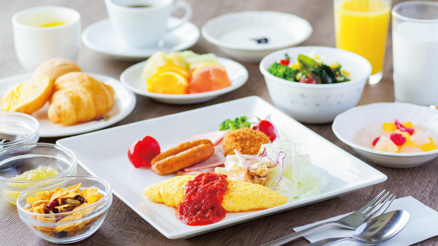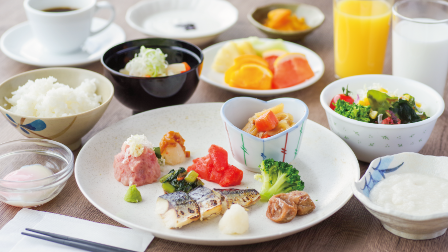 地元食材を取り入れた、和食・洋食こだわりのメニューをブッフェスタイルでご用意しております。