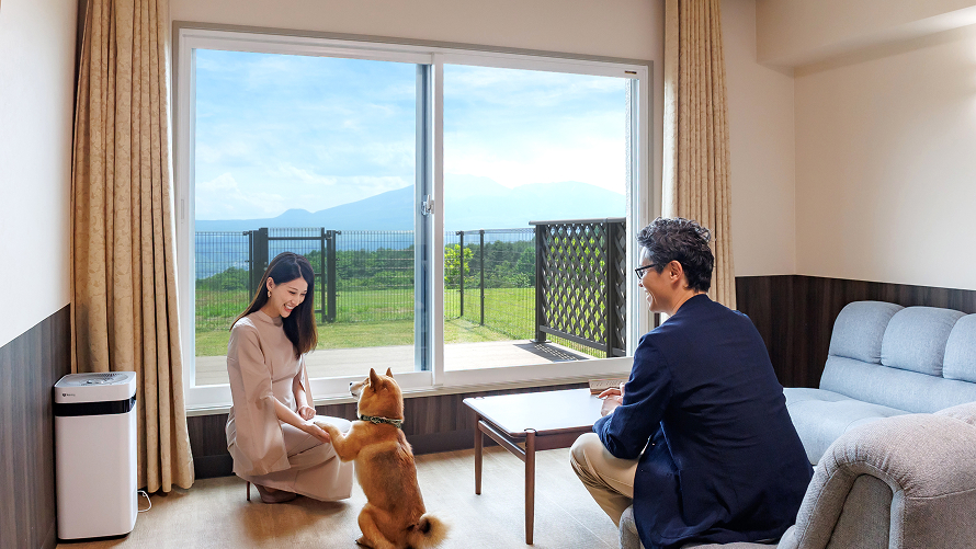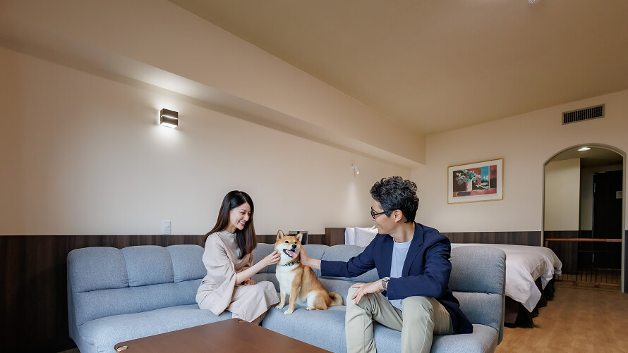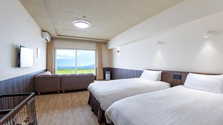 ワンちゃん同伴専用客室です。嬬恋高原の緑を感じながら、ワンちゃんとの楽しい休日をお過ごしください。