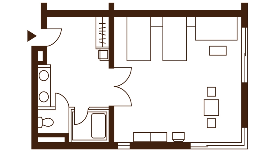 | ベッドサイズ | メイン幅120cmx長さ205cm 2台、ソファベッド幅91cmx長さ200cm 1台 |
