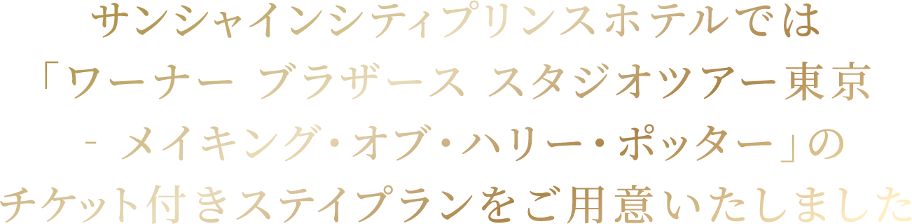 サンシャインシティプリンスホテルでは「ワーナー ブラザース スタジオツアー東京‐ メイキング・オブ・ハリー・ポッター」のチケット付きステイプランをご用意いたしました サンシャインシティプリンスホテルでは「ワーナー ブラザース スタジオツアー東京‐ メイキング・オブ・ハリー・ポッター」のチケット付きステイプランをご用意いたしました