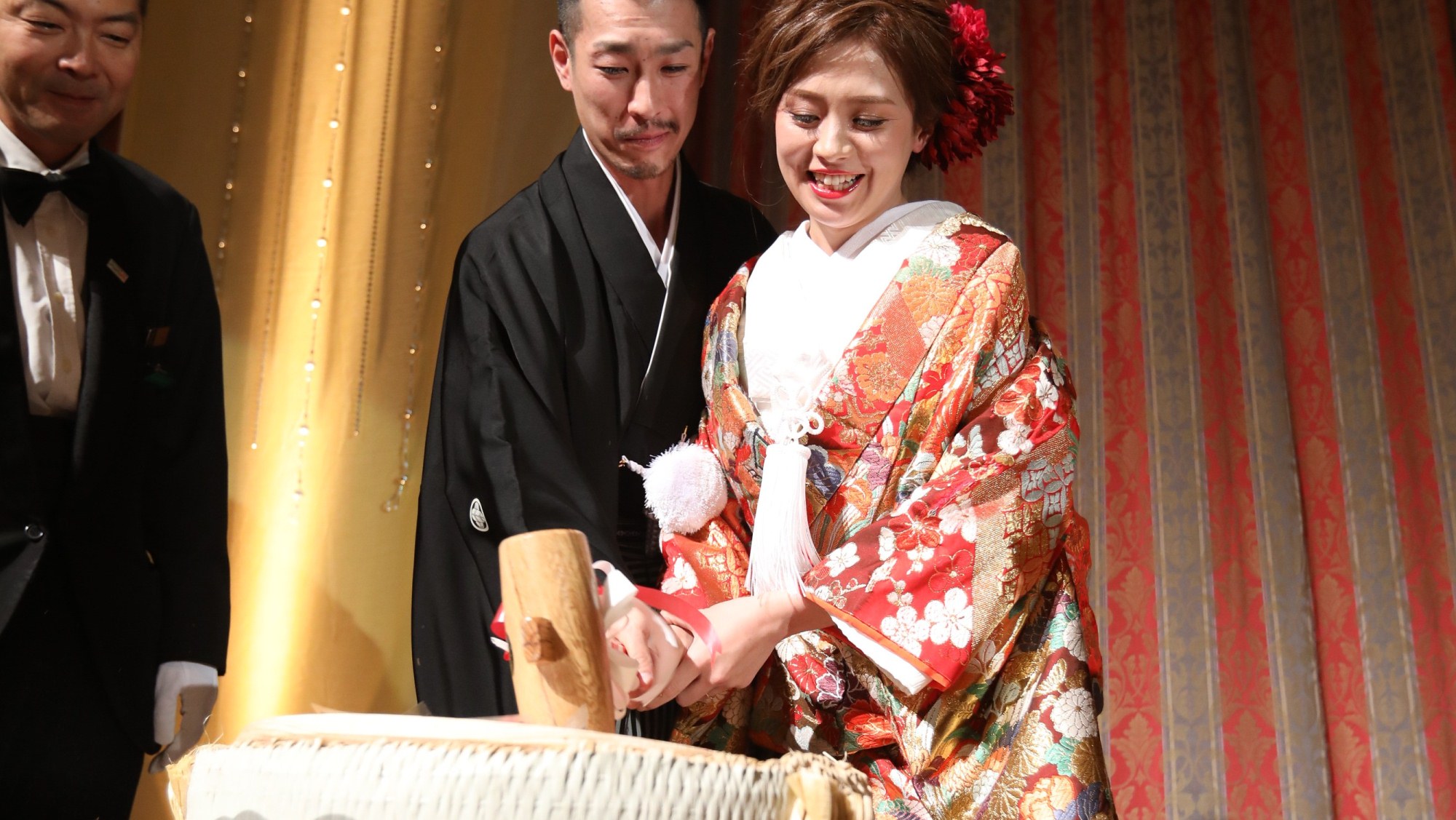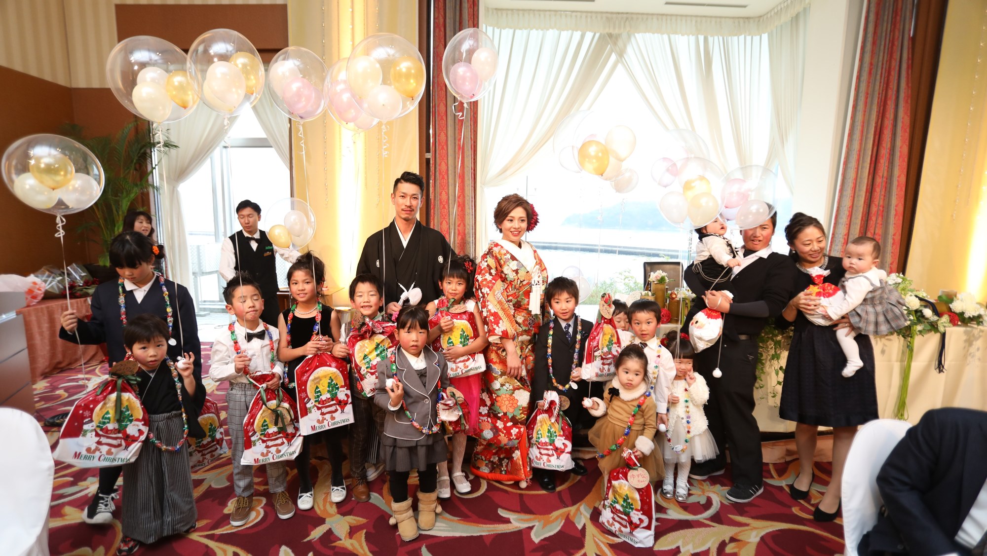 乾杯前に鏡開きの演出をしたり、子どもの出席が多かったので、