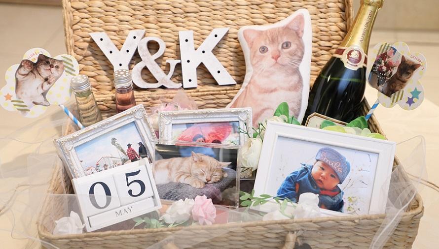 ウェルカムスペースは愛猫の写真をプリントしたクッションを使うなどしてこだわりました。