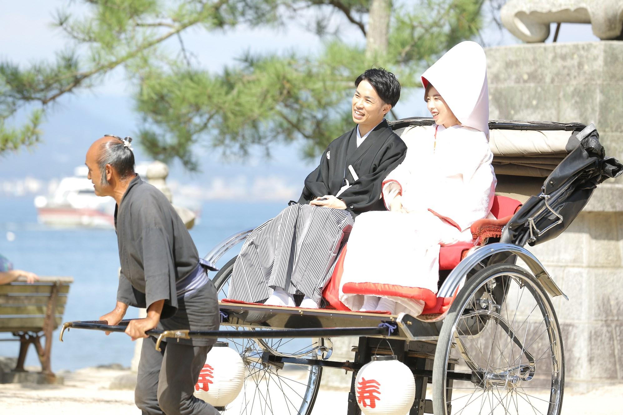 厳島神社で挙式をする事が決まっており、宮島からプリンスホテルまで船が直行便であった所と