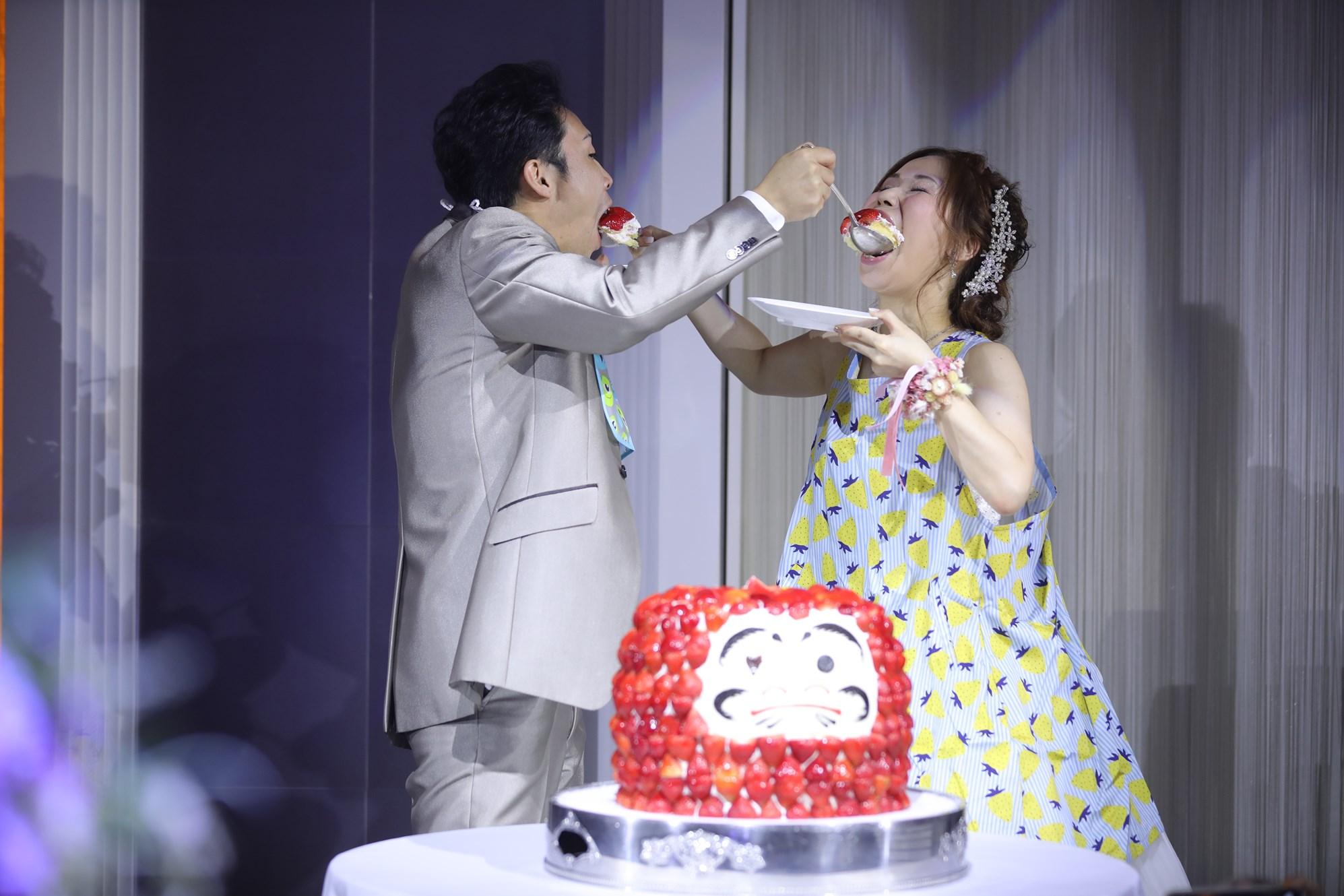 共同作業はウエディングケーキのセレモニーでだるまの目入れをしました。