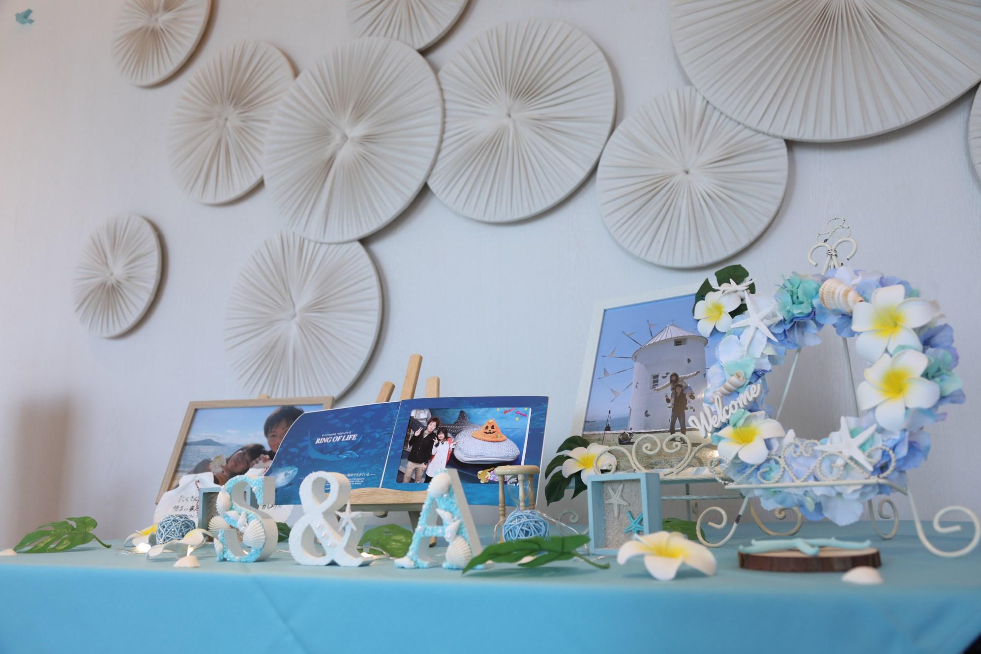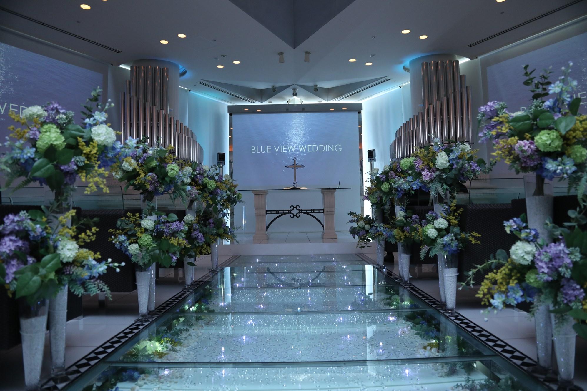 ふたりとも海辺の街出身で挙式が夏だったこともあり、爽やかな海辺をイメージして