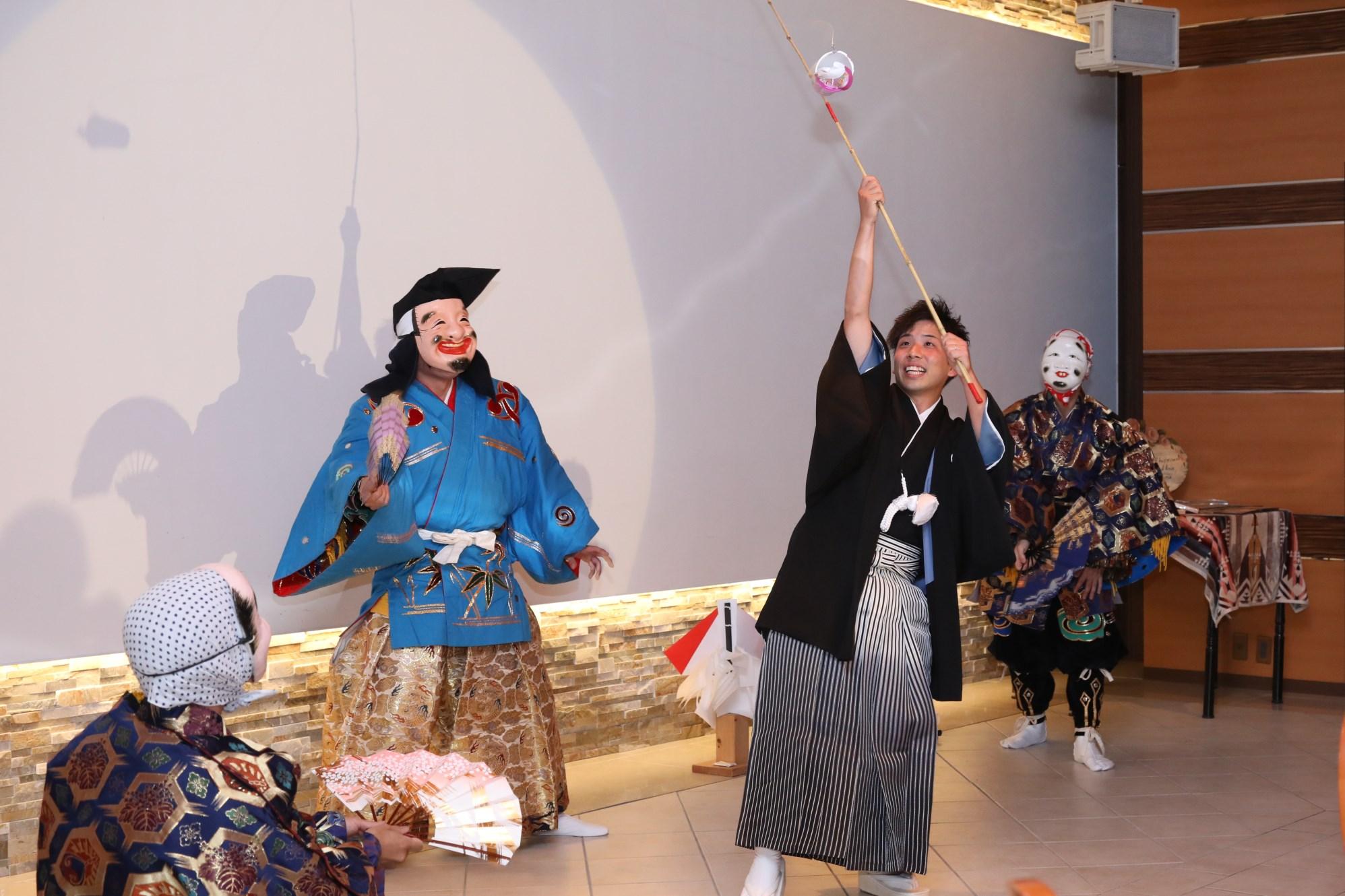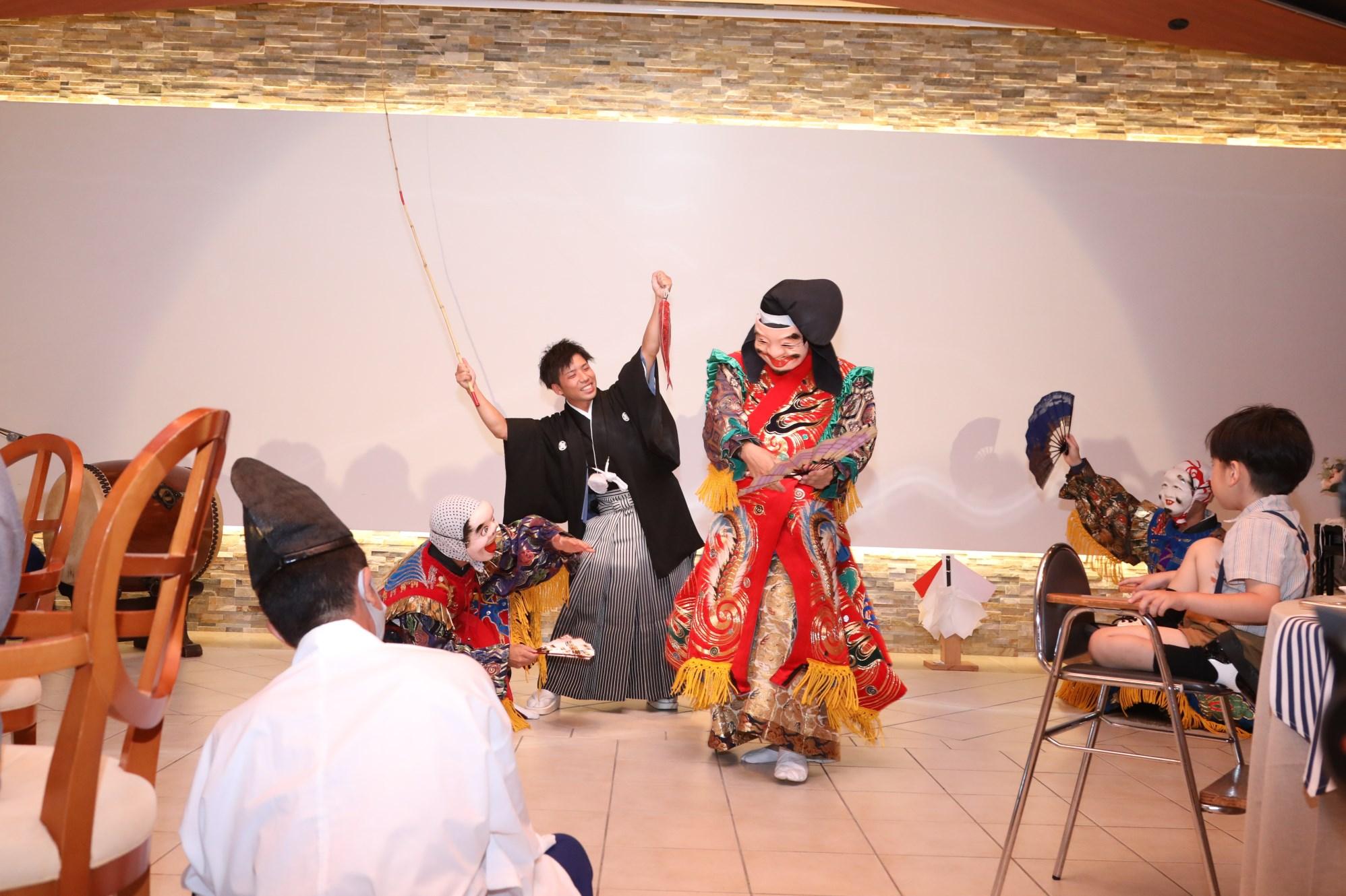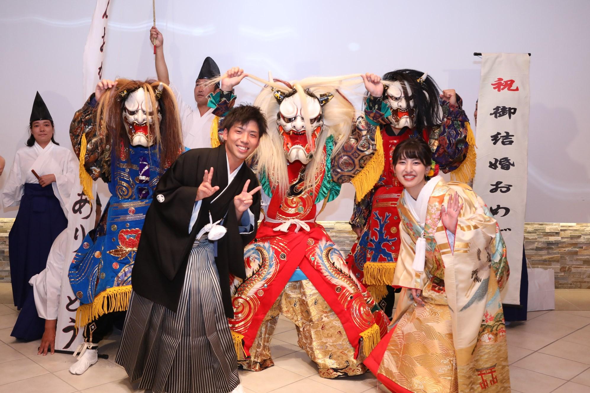 新婦の友人が神楽団に入っていることもあり、新婦の家族には内緒で神楽団の方に舞ってもらいました。