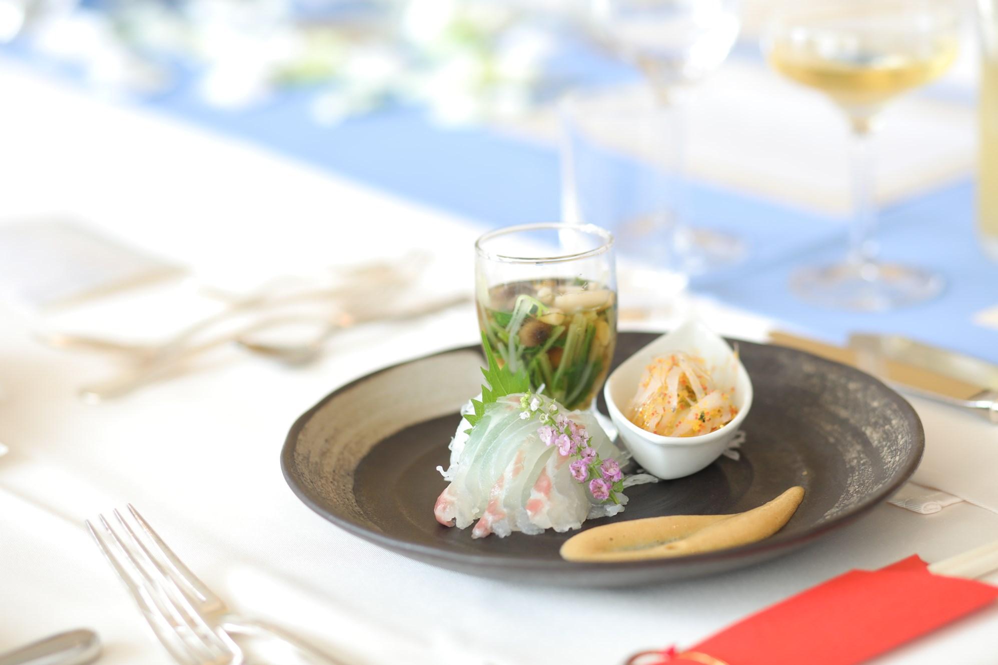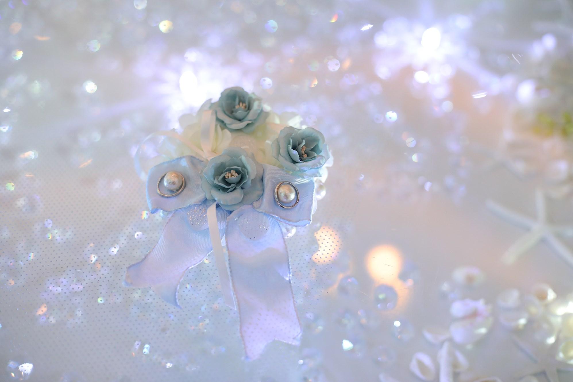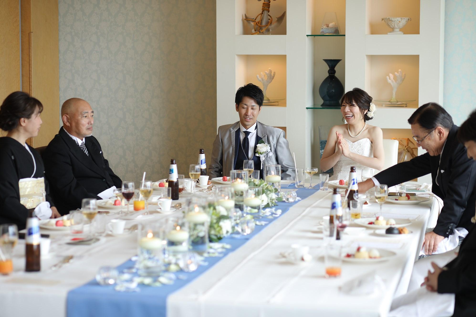 淡い緑や白を取り入れ、テーブル中央のテーブルランナーはブルーにしました。