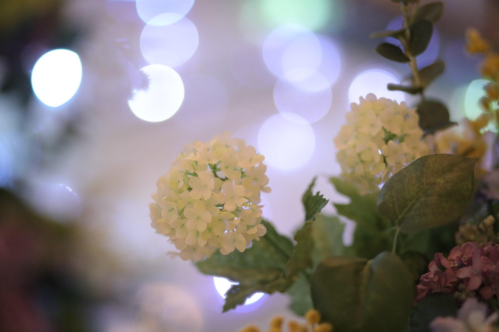 ナチュラルな雰囲気かつ海の雰囲気を取り入れたかったので、ブーケとテーブルに飾る花は