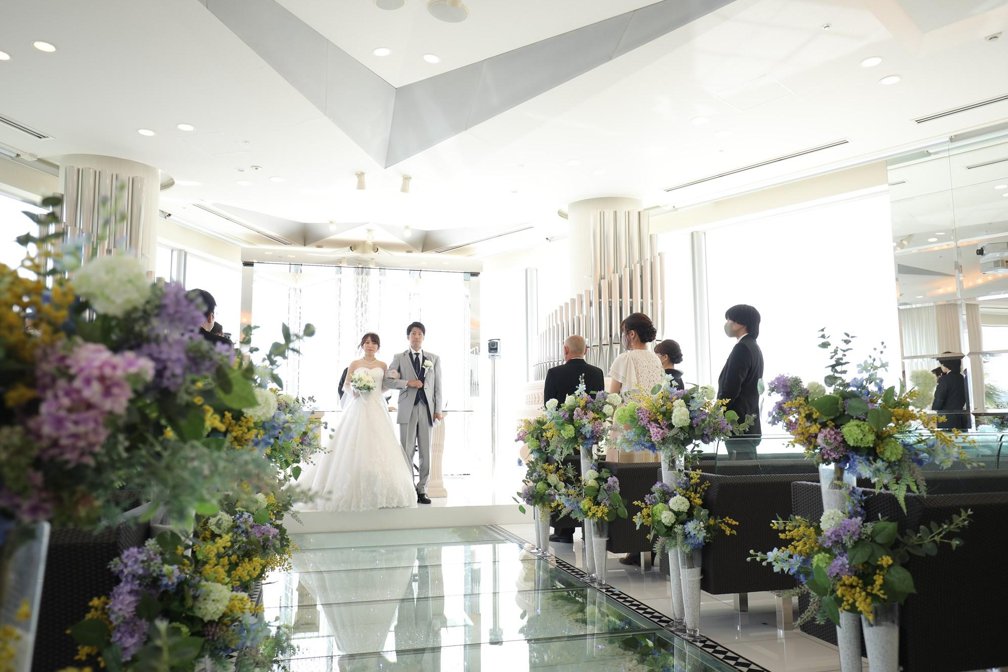 瀬戸内海が一望できるチャペルがとてもキレイで、また扉が2ヵ所あることにも意味があり感動しました。