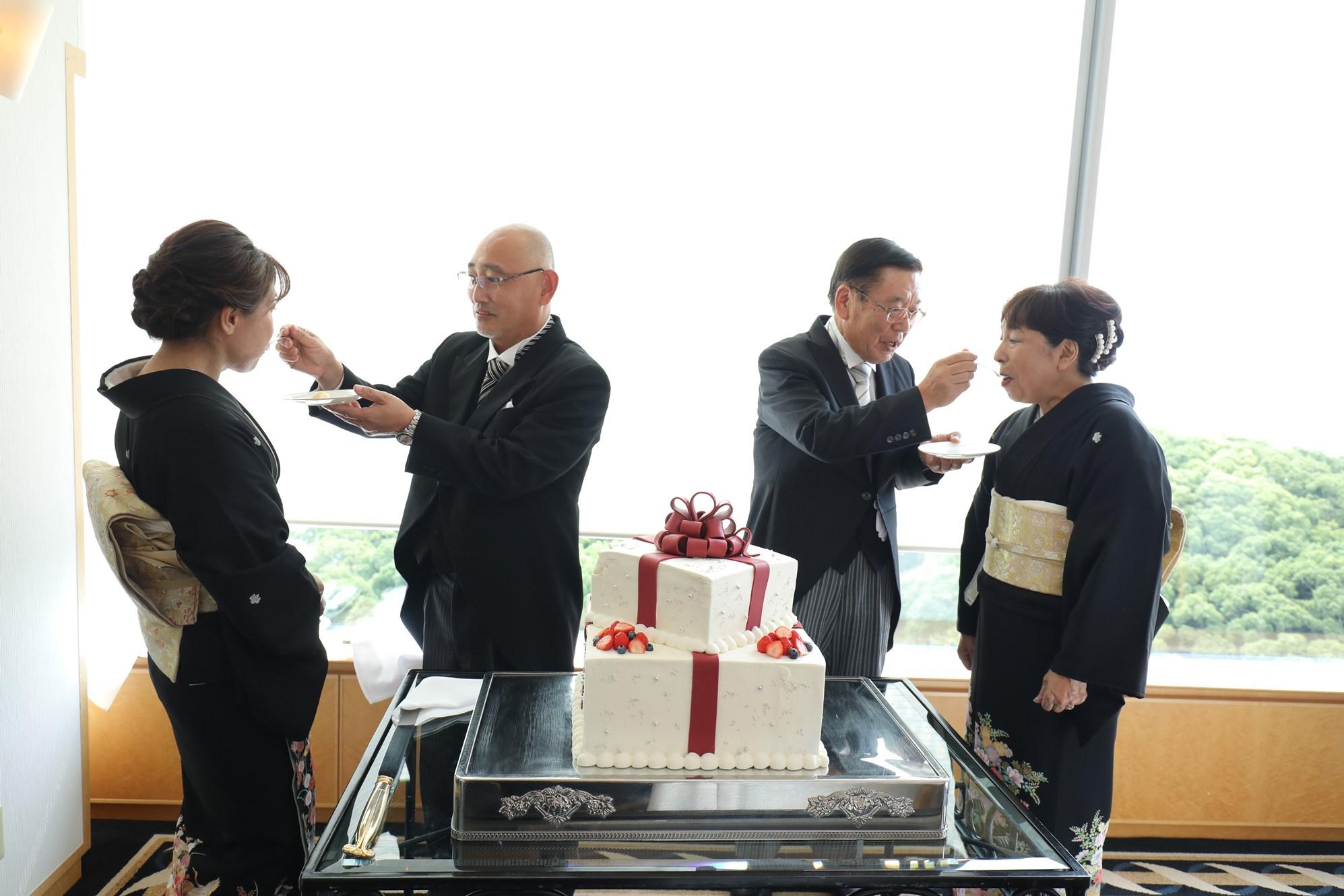 ウエディングケーキ入刀後、両親のお手本バイト、また自分たちのファーストバイトの際には