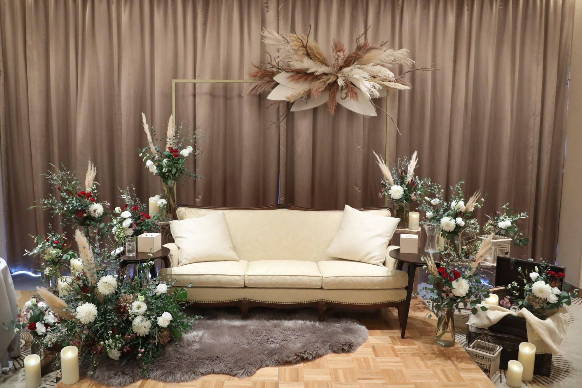 テーマカラーはブラウン、ゴールド、深めの赤色、くすみ系のカラーで季節に合ったカラーをイメージしました。
