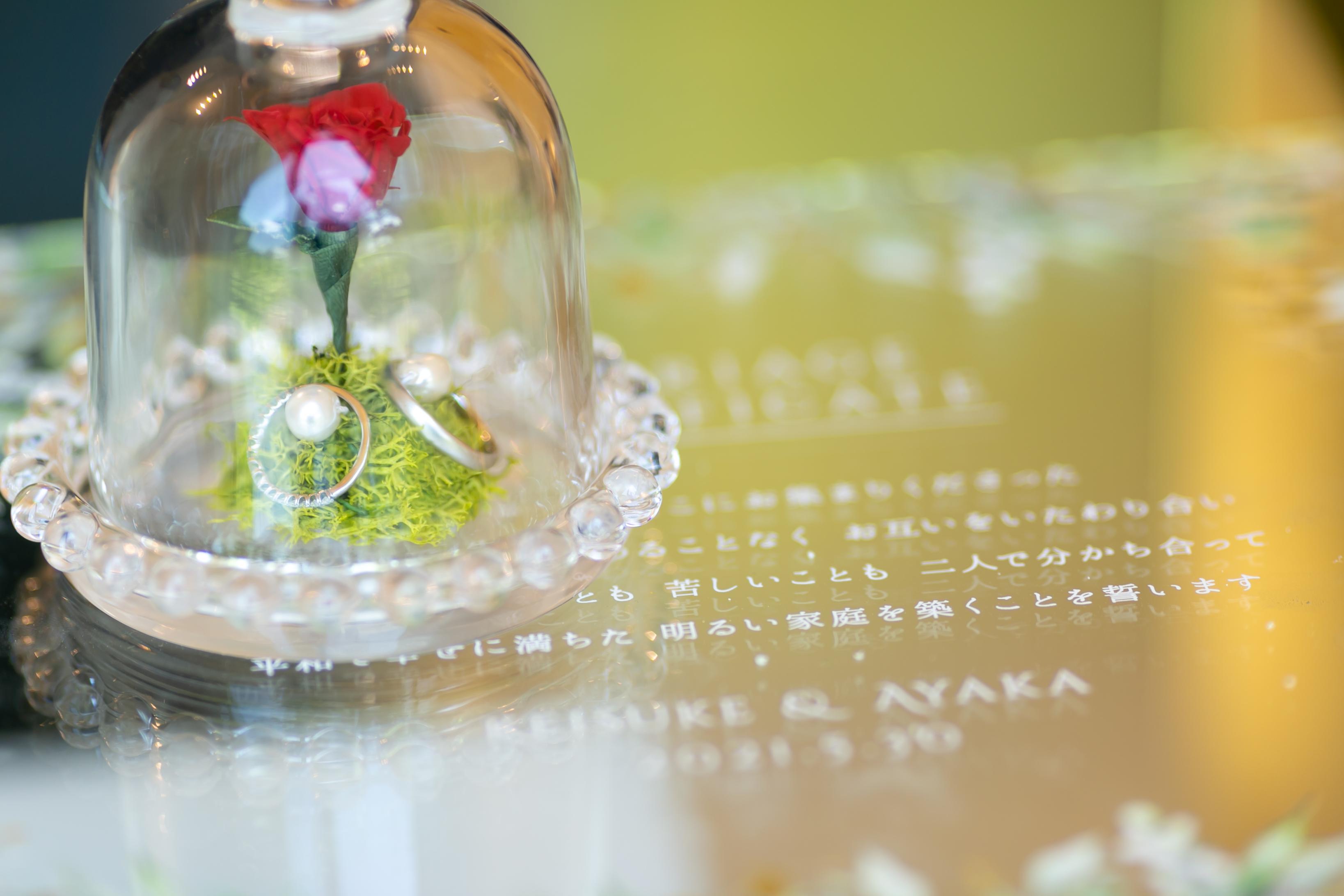 カラードレスがイエローだったので、「美女と野獣」を意識した小物や選曲を散りばめました。