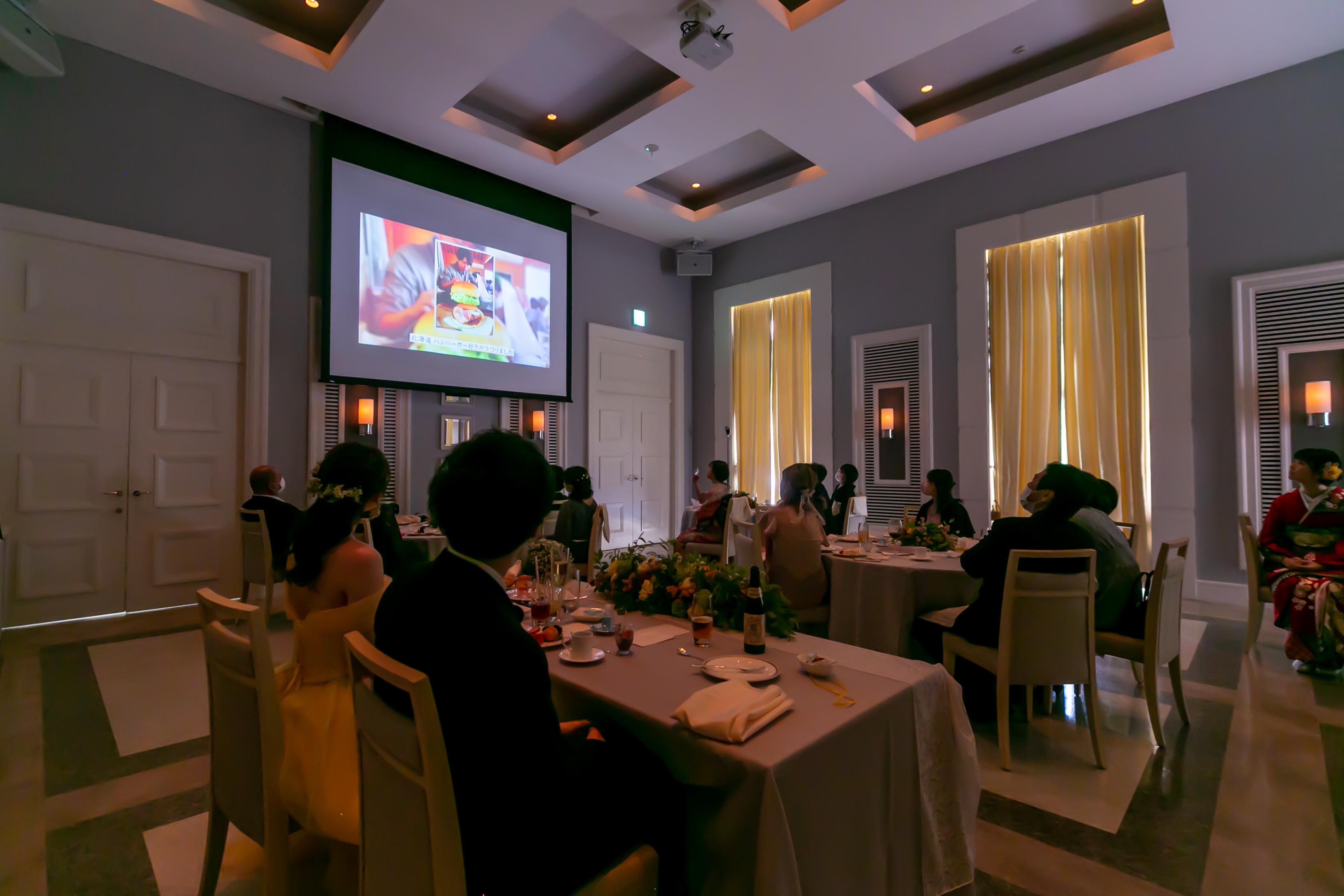 新婦から新郎へサプライズムービーのプレゼント。とても驚きましたが、嬉しかったです(新郎)