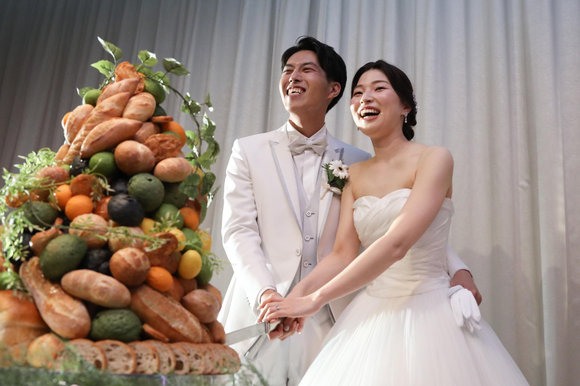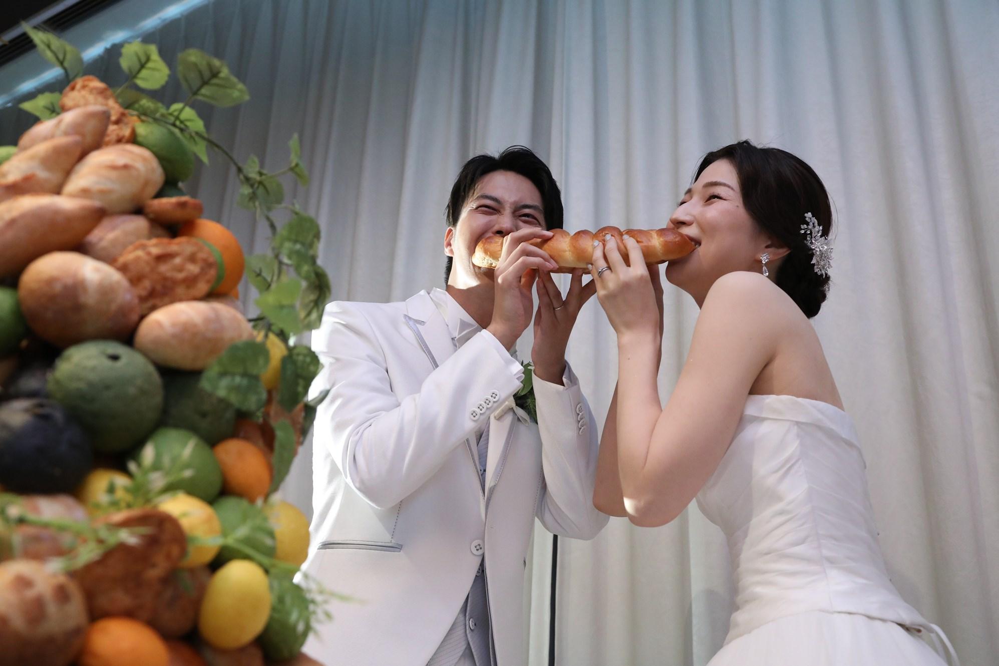 1番のこだわりはウエディングケーキのかわりの、「パンタワー」です。