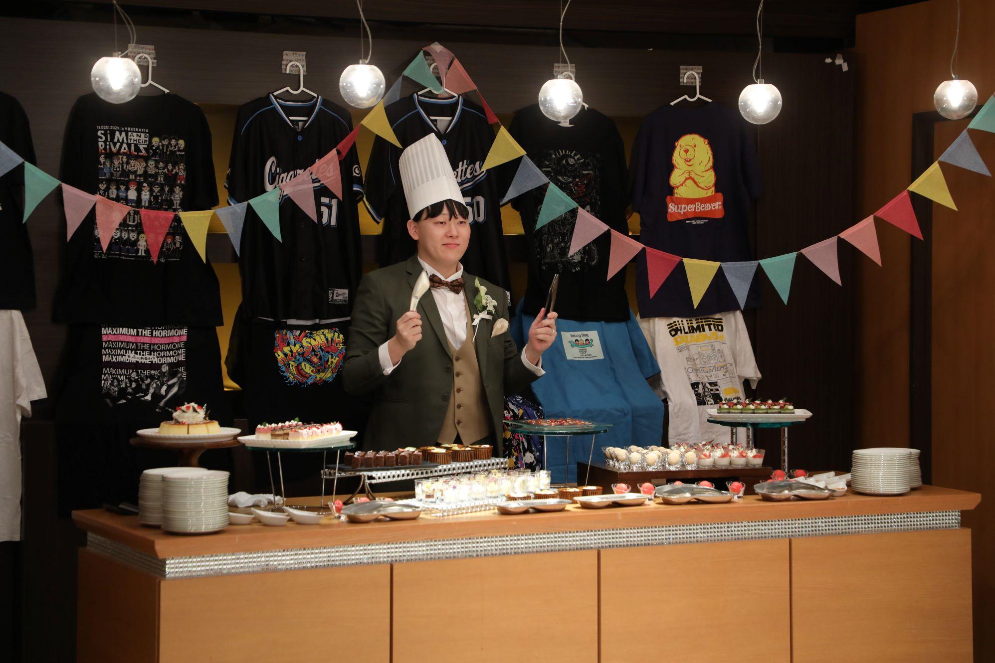 新郎がデザートブッフェでコック帽をかぶって登場したり、
