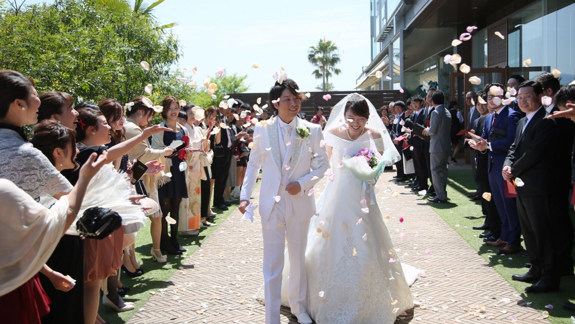 挙式後のフラワーシャワーもお天気に恵まれて最高でした!