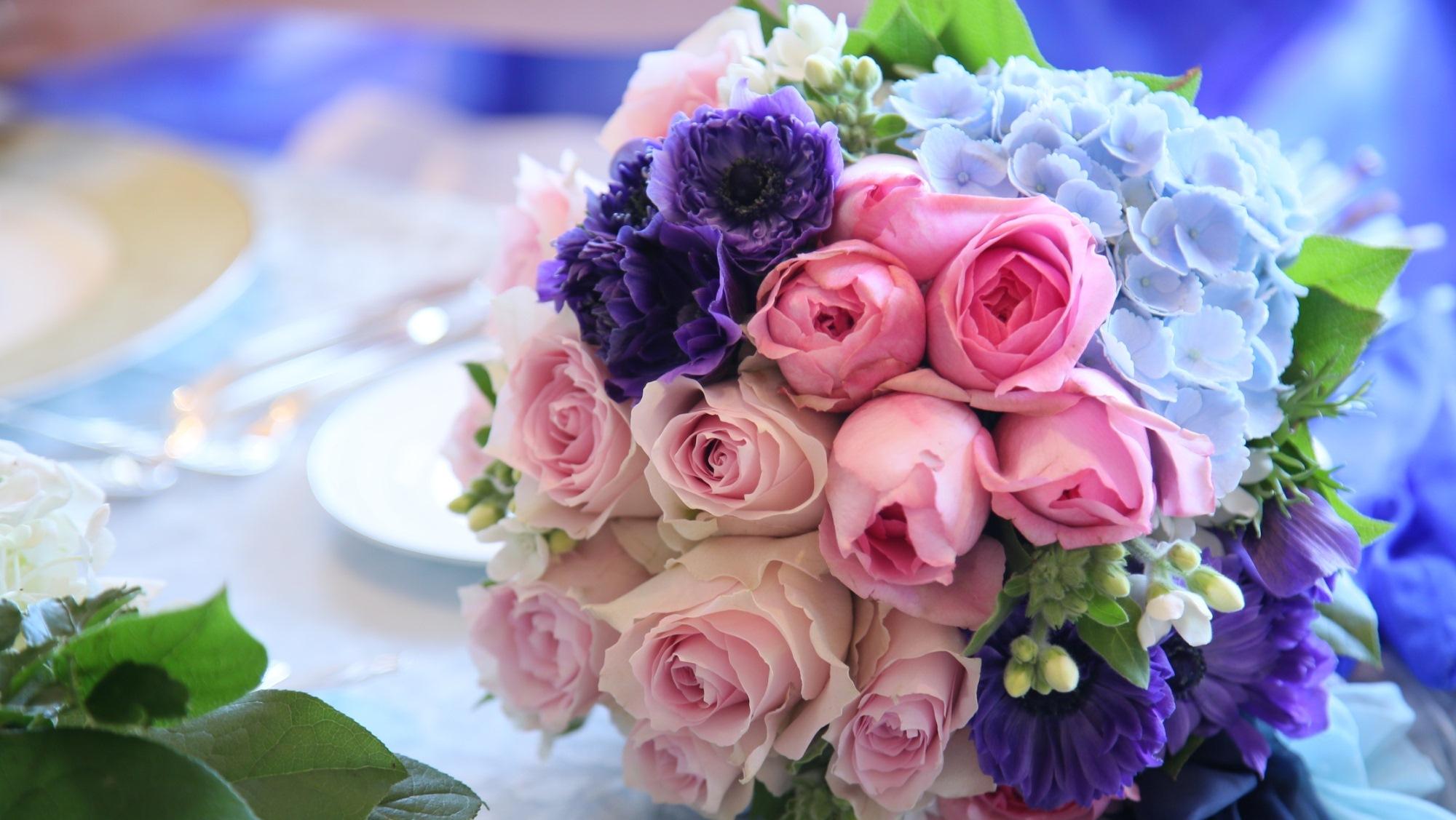 会場のお花はブルー×ピンク×白で爽やかな雰囲気にしました。