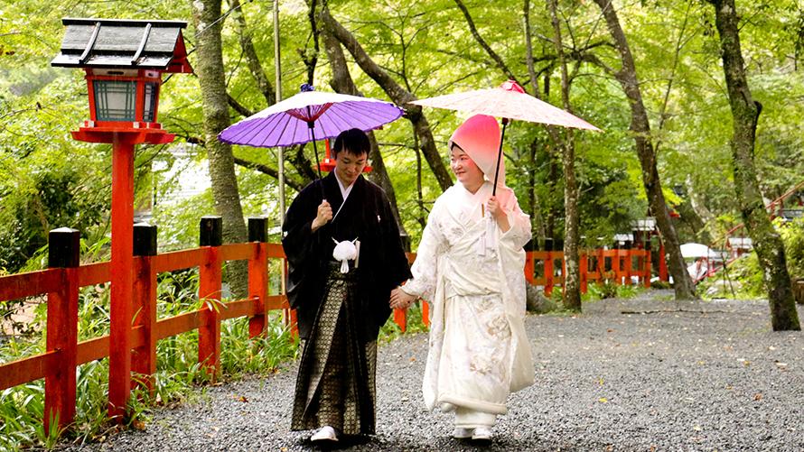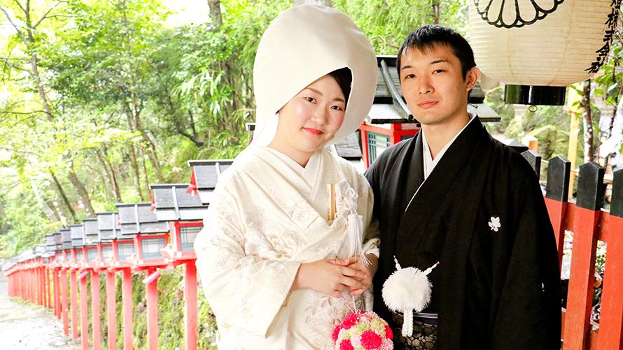 貴船神社での神社式を行いました。京都で式をするなら貴船神社でと考えてはいましたが、事前見学の際の応対にとても好感がもてました。雅楽の生演奏、巫女舞も厳かでしたし、神職のご挨拶の言葉もとても深く心に残りました。花嫁ハイヤーに乗って移動というのも、神前式ならではだと思いますので、忘れられない思い出になりました。