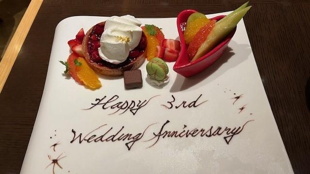 毎年恒例のアニバーサリープレートもナイスタイミングで出してくださるので、夫にサプライズができてうれしかったです!