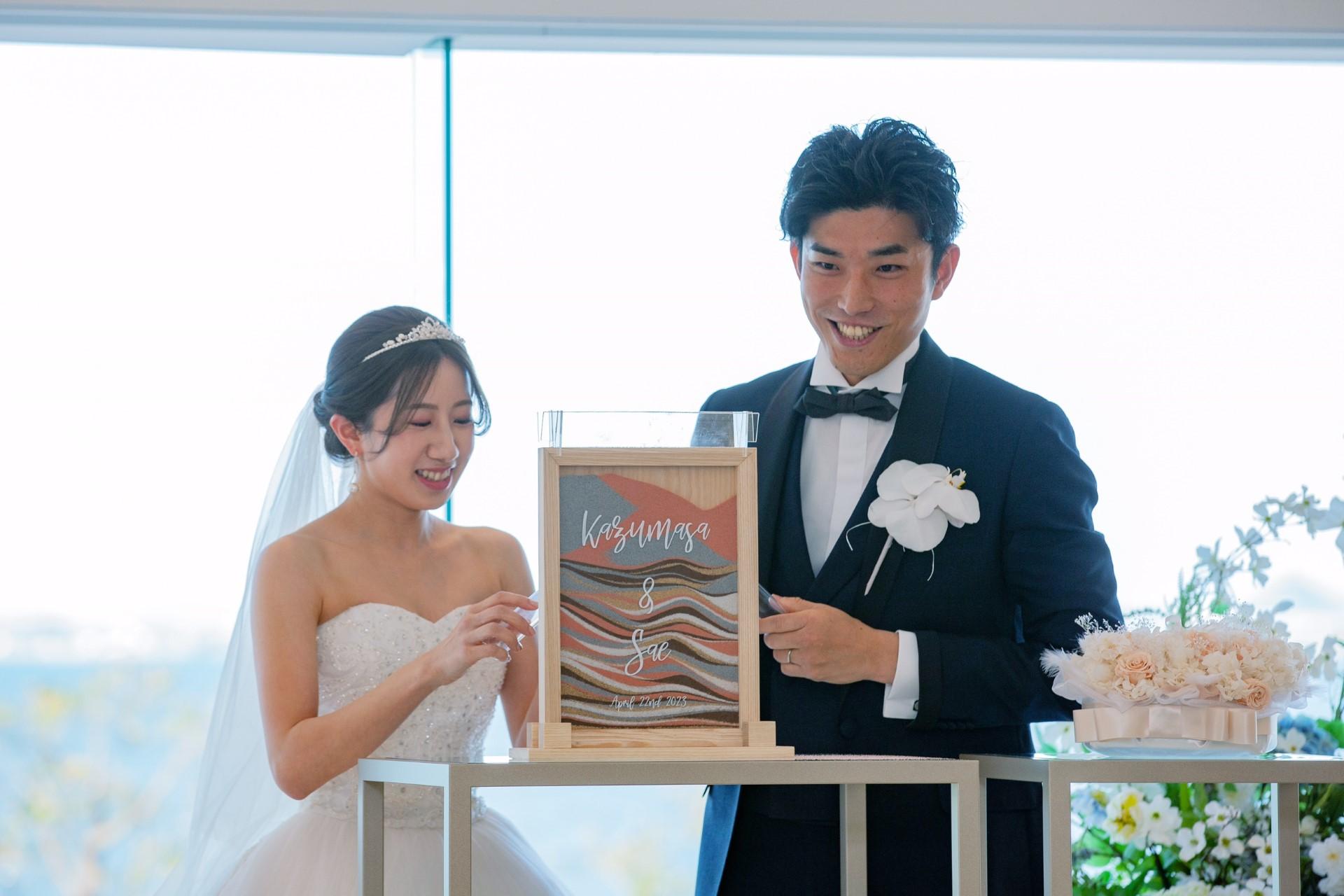 人前式にしてサンドセレモニーを取り入れました。途中で変更したのにも関わらず協力していただけてとても嬉しかったです!