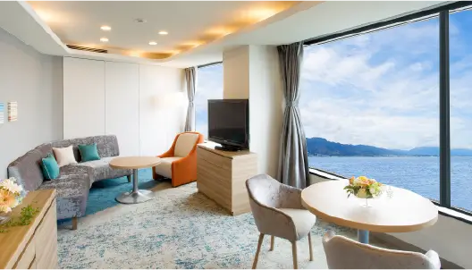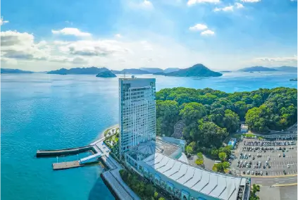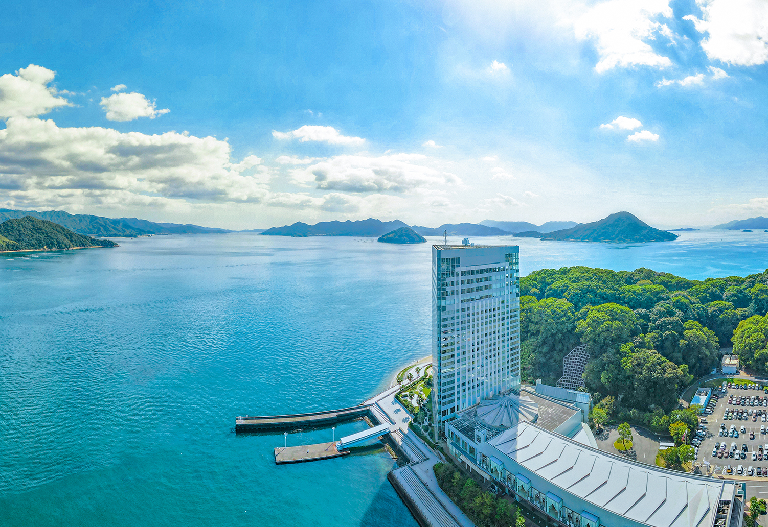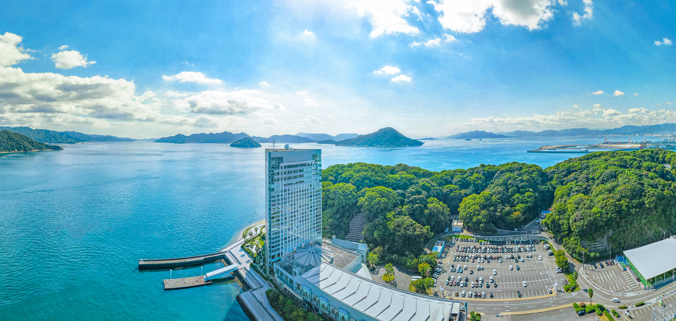 瀬戸内海に浮かぶ島々が織りなす美しい景観と、広大な空の絶景を一望する海辺のリゾート。ホテル前の桟橋より宮島へは高速船で26分。瀬戸内海観光の拠点として大変便利なロケーションです。
