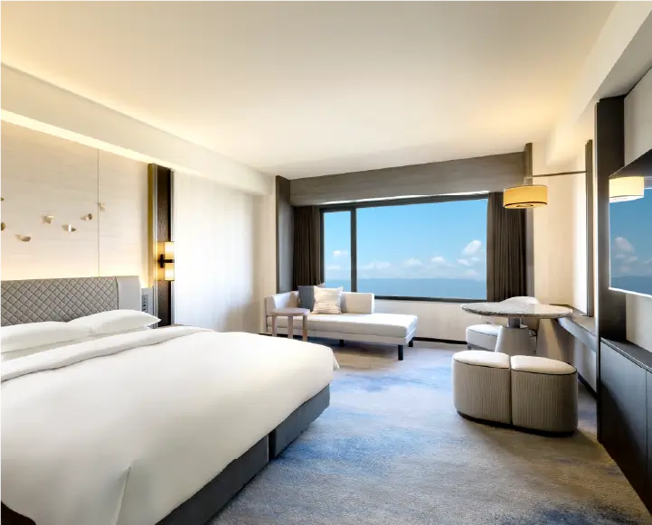 湖畔に佇む高層38階建てのホテルは全室びわ湖を見渡すパノラマビュー。京都から大津までJRで2駅10分のロケーションに位置し、観光の拠点としても最適です。「びわ湖の特等席」からの絶景とともに、国際料理賞コンクール入賞のシェフによる美食体験もおすすめです。
