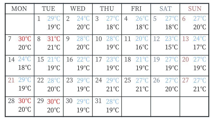 【8月】気温30℃を超える日は、5日間!都心部では残暑厳しい中、快適な環境でお過ごしいただけます。