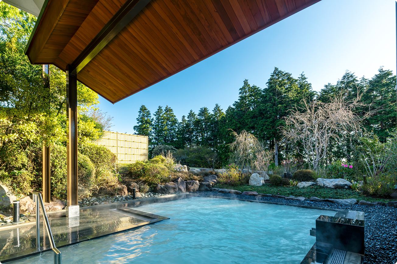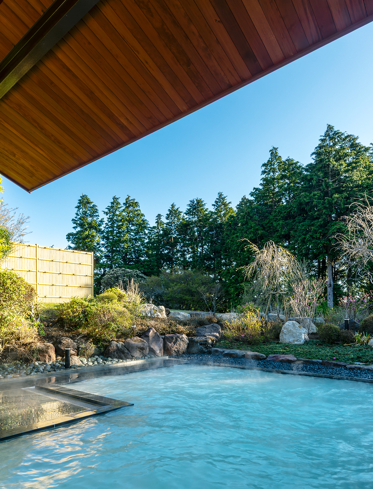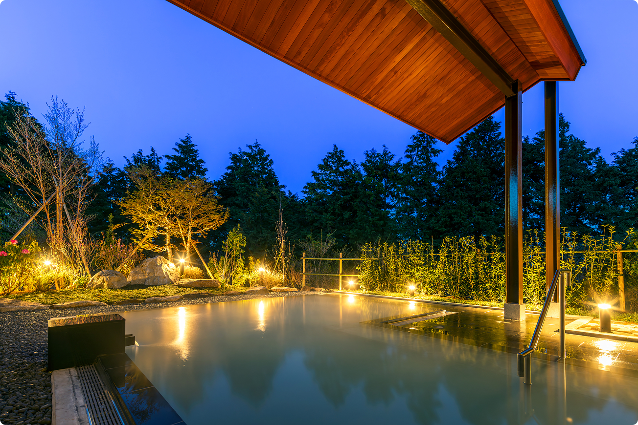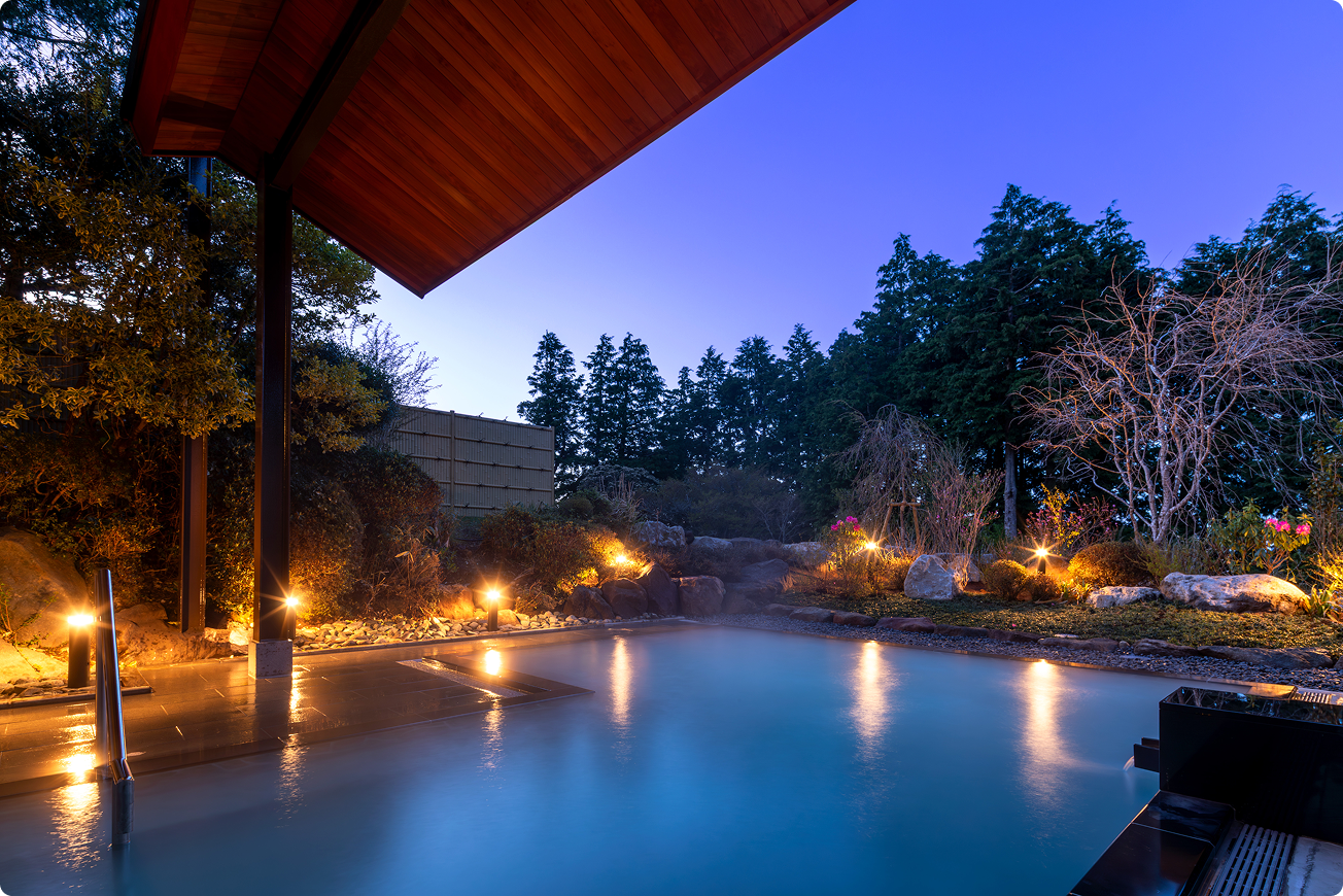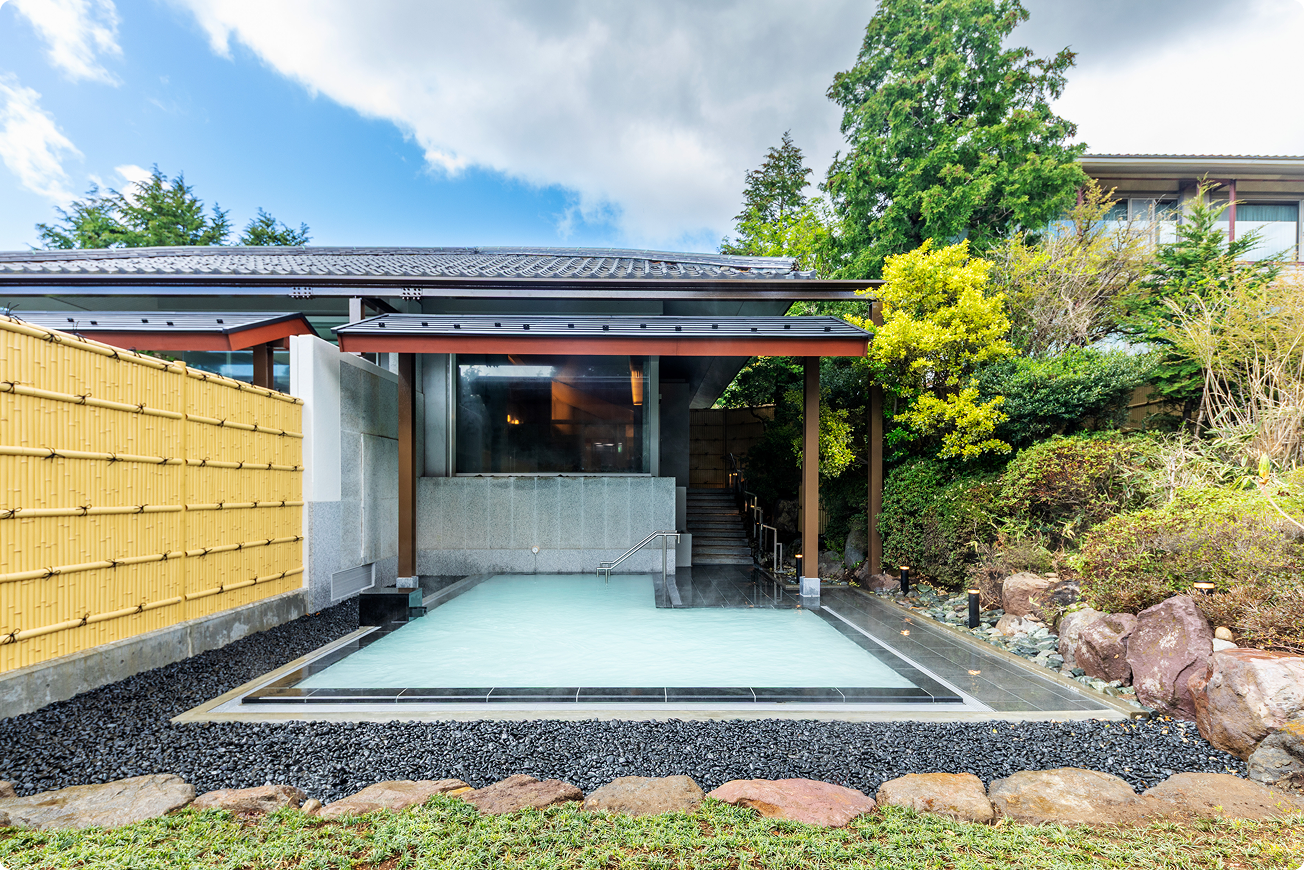箱根で最も天空に近い乳白色の温泉露天風呂からは、